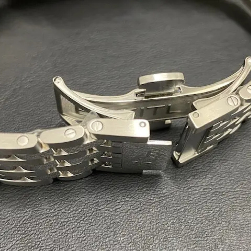 Encased in brushed and polished stainless steel, the watch houses a bidirectional notched bezel with the Navitimer’s iconic slide‑rule function, historically used for flight calculations. The harmonious dial layout presents three contrasting black chronograph subdials (elapsed seconds, 30 minutes, 12 hours) and a framed date at 6 o’clock. Applied baton indices and luminous hands ensure clarity across lighting conditions, while the red-tipped chronograph hand nods to its precision timing heritage.