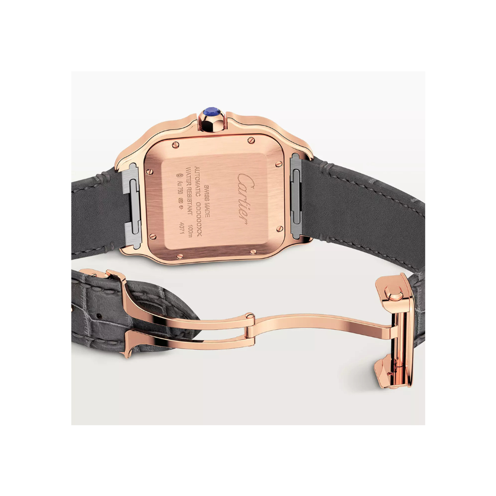 The Santos de Cartier Large Automatic in 18k rose gold is an iconic timepiece that blends timeless elegance with modern innovation. Originally designed in 1904 for aviation pioneer Alberto Santos-Dumont, this luxury watch remains a bold statement of style and precision engineering.