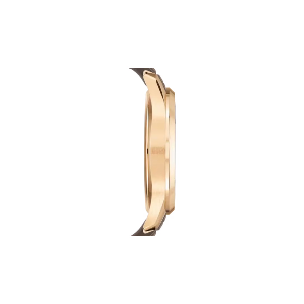 - Strap: Chocolate brown composite rubber strap with 18K rose gold fold-over clasp