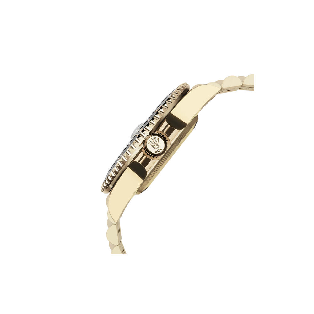 Bracelet Type: Jubilee bracelet (five‑piece links) in 18 ct yellow gold, with Oysterlock folding safety clasp and Easylink comfort extension link (~5 mm)