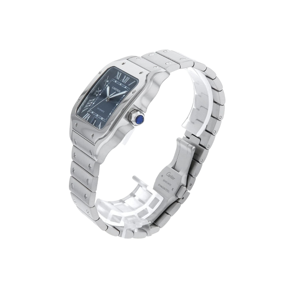 The Santos de Cartier Medium Blue Dial Automatic Bracelet/Strap Watch is a modern reinterpretation of one of Cartier’s most iconic timepieces — the Santos, originally designed in 1904 for aviation pioneer Alberto Santos-Dumont. Blending technical innovation with elegant design, this medium-sized model is perfect for discerning watch enthusiasts who appreciate heritage and style in equal measure.